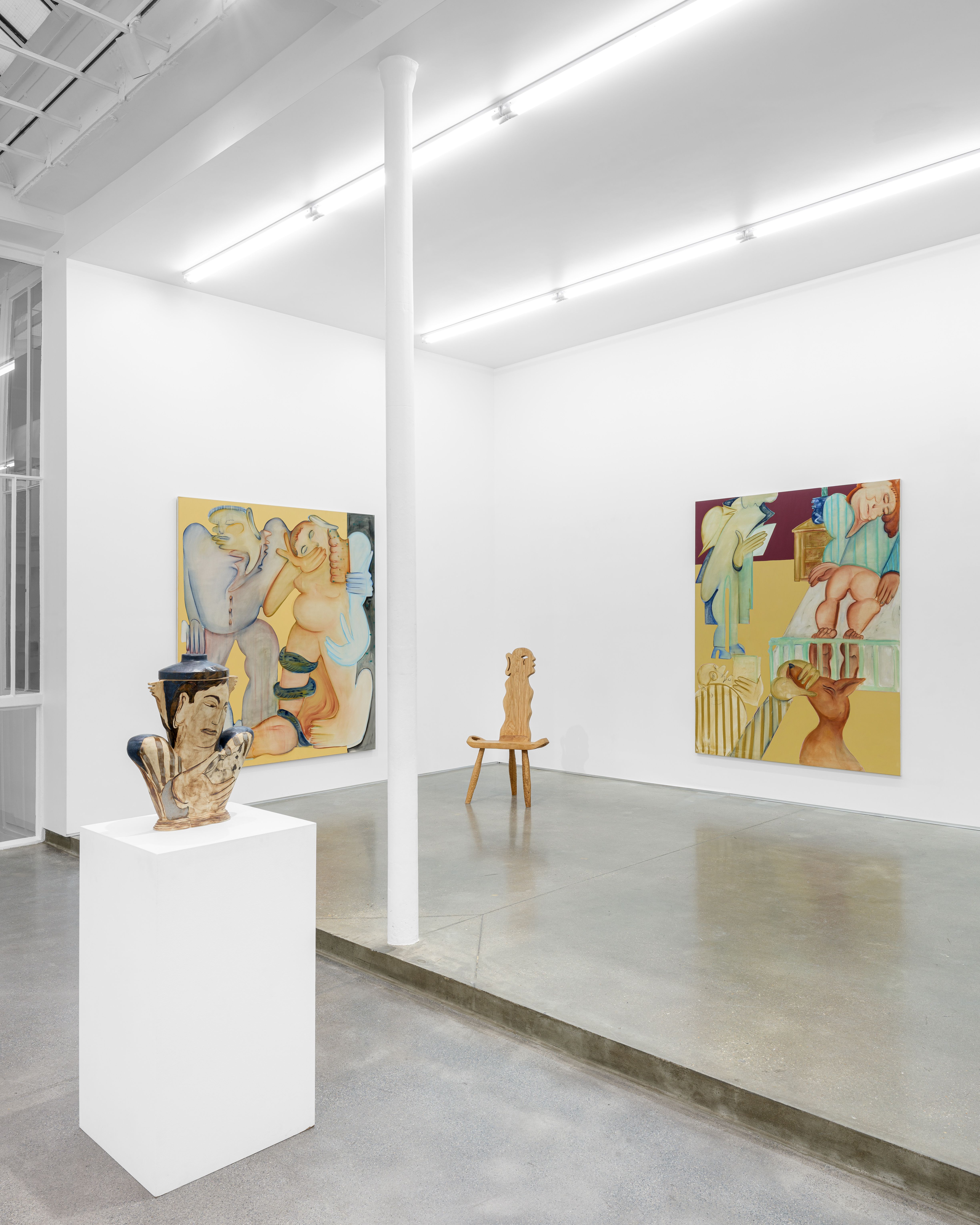 Anastasia Bay's new solo exhibition, “Night Mother,” brings together a collection of previously unseen works—paintings, ceramics, furniture—that immerse us in an intimate universe where she recounts an experience of motherhood that is still too rarely addressed.